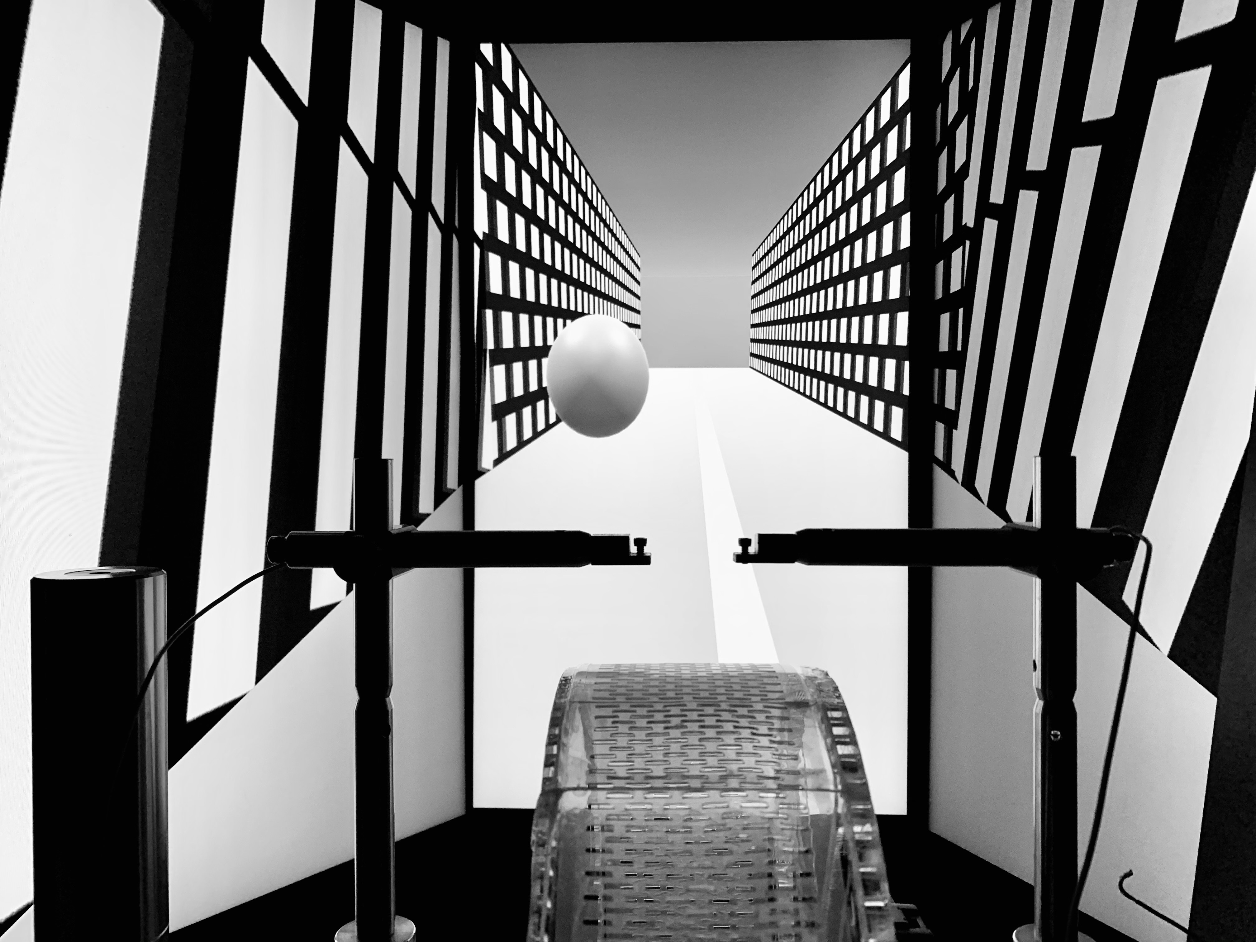 The mouse runs on a physical wheel that syncs to the virtual reality system through an optical (computer) mouse. As the wheel turns, it moves the computer cursor, giving the mouse the impression it’s moving through a physical corridor as it navigates the virtual environment.